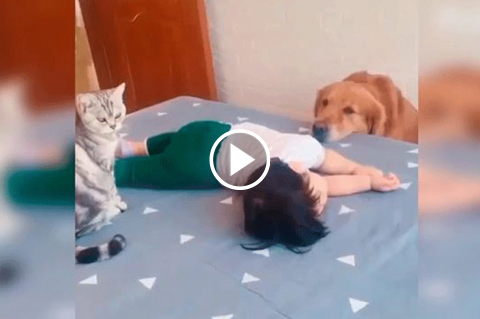 Mientras ella terminaba de hacer unas tareas en el hogar que le quedaban pendientes, dejó a su hija al cuidado de sus mascotas, un gato y un perro. Sin embargo, nunca se imaginó que al regresar a la habitación se encontraría con una escena tan tierna como conmovedora.