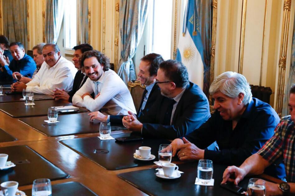 El encuentro, que según indicaron los gremialistas fue "convocado por el Gobierno", se realizó sin la presencia del presidente Alberto Fernández en el salón Norte de la Casa Rosada, y fue encabezado por el jefe de Gabinete, Santiago Cafiero, y el ministro de Trabajo, Claudio Moroni.