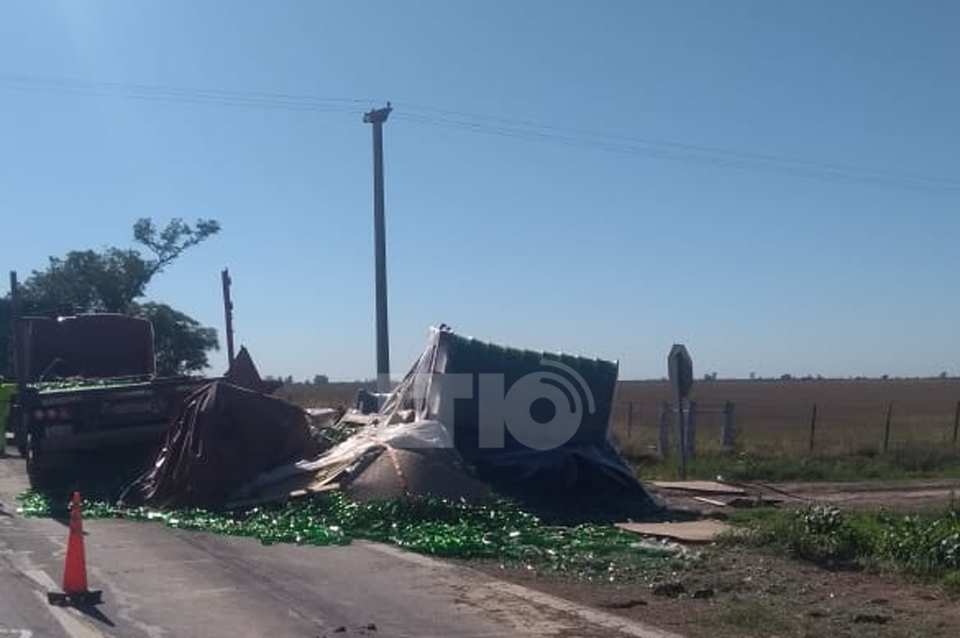 Alrededor de las 9hs de esta jornada, un camión protagonizó un accidnte en la ruta nº19 a la altura de Angélica y volvó su carga de botellas sobre la calzada.