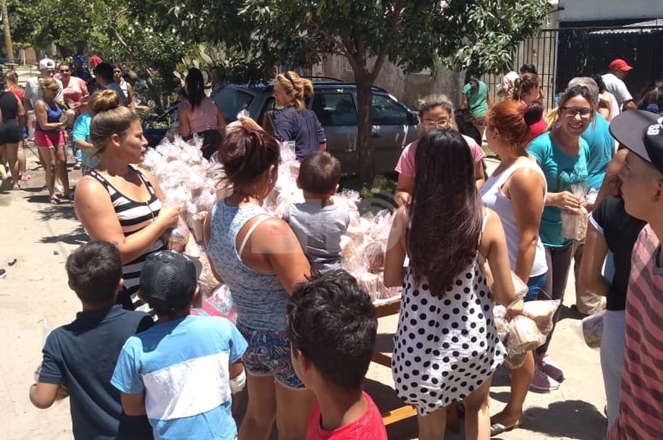 Desde hace una semana las solidarias manos vienen amasando para poder confeccionar alrededor de 800 pan dulces que este mediodía reparten entre los vecinos de la zona y los pasajeros de los colectivos que hacen su recorrido por allí. En 2016 la producción fue de 300 pan dulces, pero con el correr de los años el número aumentó y hoy llegan a muchas familias más de forma desinteresada y con esfuerzo propio.