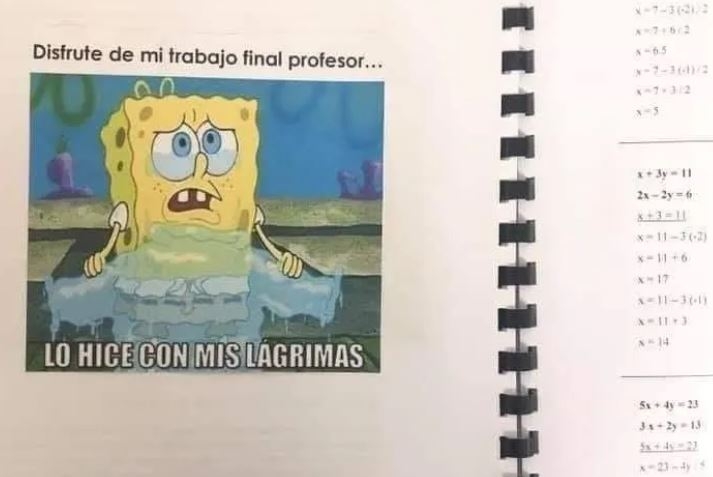 Un profesor de la materia “Métodos Cuantitativos” le solicitó a sus alumnos que realizaran un trabajo final. Uno de los jóvenes decidió “darle una vuelta de tuerca” y utilizó diferentes memes.