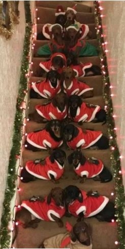 Logró que sus 17 perros salchichas posaran juntos y con disfraces navideños