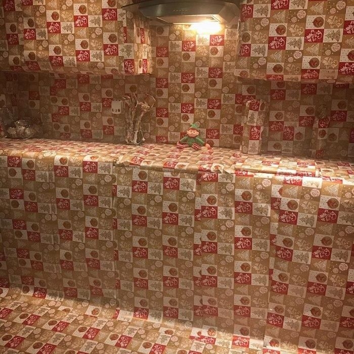 Un hombre quiso sorprender a su familia esta Navidad con una idea particular: envolvió toda la cocina con papel de regalo al estilo de “Un duende en el estante”, una costumbre estadounidense en esta época del año con la que se divierten los niños de ese país.