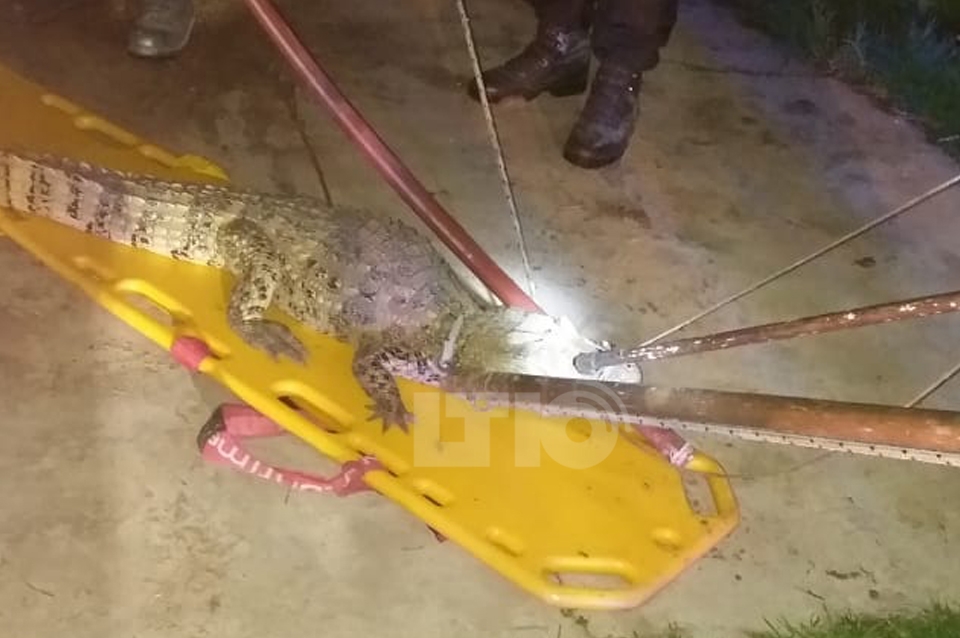 Ni bien se percataron de la presencia del animal, los dueños de la finca ubicada en Rivadavia al 9200  llamaron al 911.  Minutos después, llego el COBEM quien atrapó al cocodrilo y lo trasladaron a la Granja La Esmeralda.