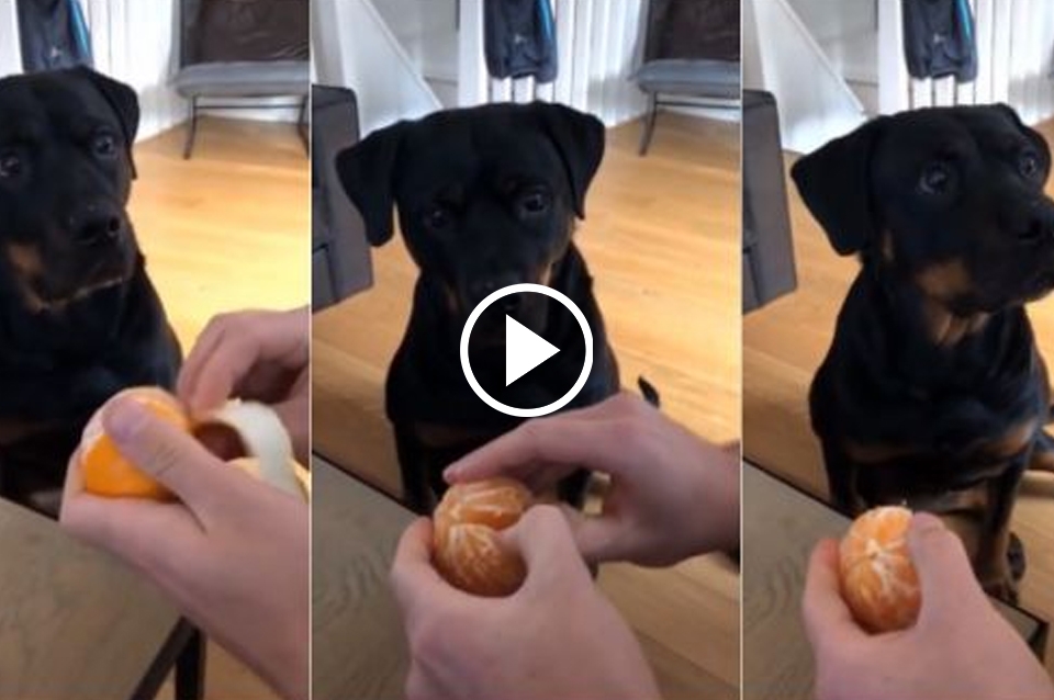 El amigo de esta mascota decidió registrar el momento en que el perro se babea y expresa una tierna debilidad y ansiedad por comer su fruto favorito: una mandarina.