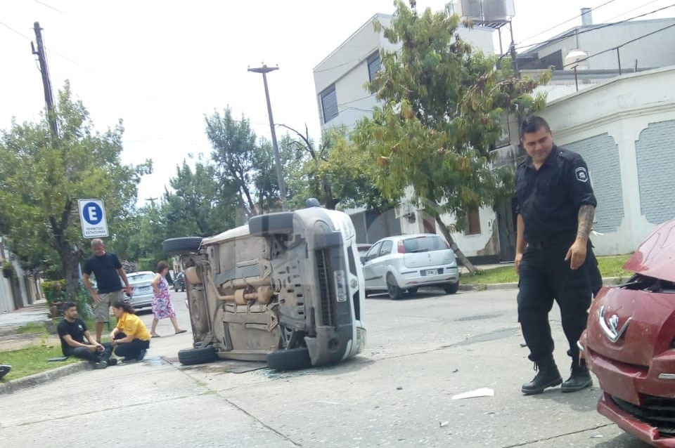 Por causas que se desconocen colisionaron un Peugeot 308 y una Renault Kangoo. El último vehículo volcó y quedó en sentido inverso al que circulaba.