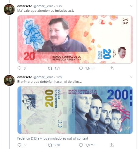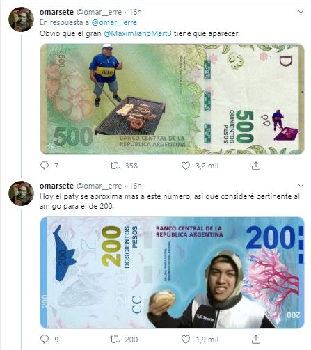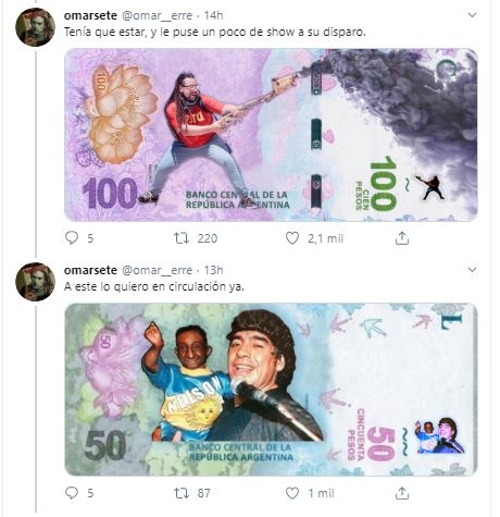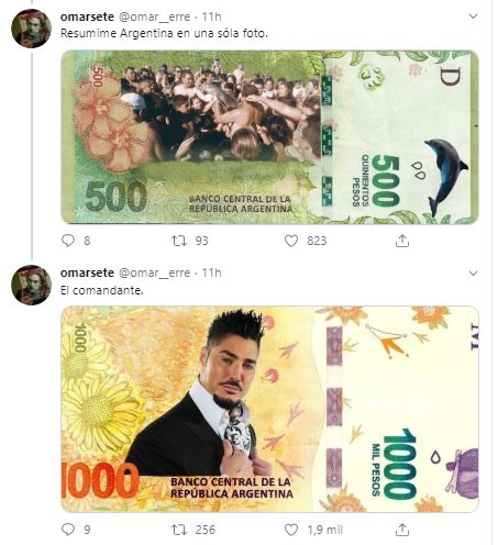 Este fue el caso del usuario @omar__erre, quien de hecho, armó un hilo que en seguida recolectó miles de likes donde propone poner en los billetes a famosos o figuras de la cultura popular, memes incluidos: