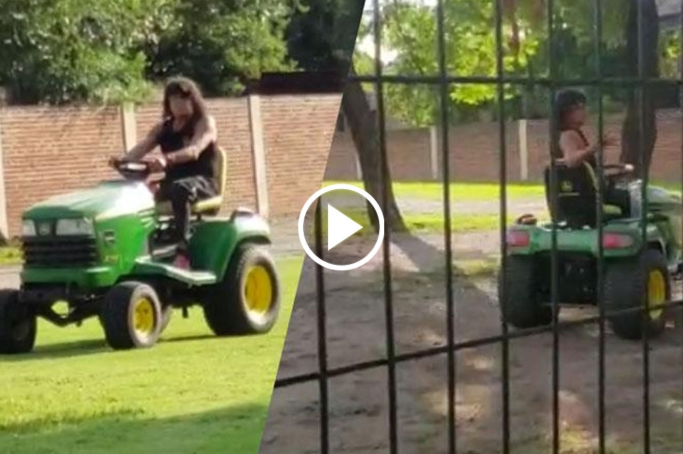 A bordo del tractor corta-césped, La Mona fue visto por varios fans, que se acercaron de inmediato para saludarlo a través de una reja. El cuartetero se distrajo mientras agradecía el cariño y chocó, a muy baja velocidad, contra un árbol.