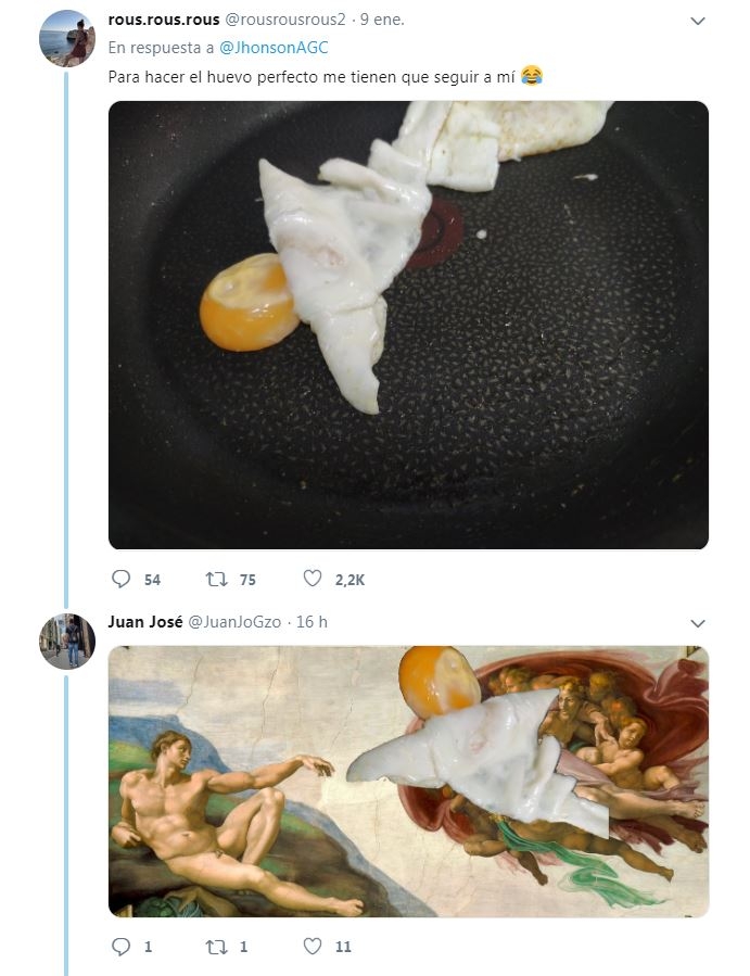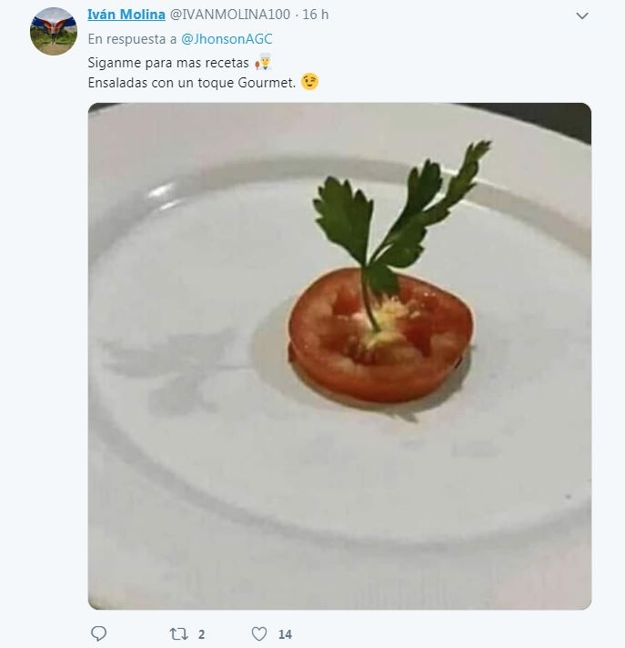 Otros comentarios de Twitter incluyeron: “Registrá el plato, grandes restaurantes te lo van a robar”, “Esa receta la inventé yo. ¿Cómo no te ha saltado el copy?”, “Se ve delicioso”, “¡A mí el agua hervida se me da de miedo!”, “¿Dónde quedó la mayonesa?”, “Las instrucciones no están claras, intenté hacerlo en mi casa y le prendí fuego a la lavadora”, “Le faltaron las hojas decorando el plato”, “Recomiendo poner nombre a las recetas para poder luego localizarlas. Así como lista de ingredientes y proceso de elaboración”, “Me falta algún paso intermedio. No sé de dónde sale esa salsa roja”. También compartieron sus propias recetas minimalistas.