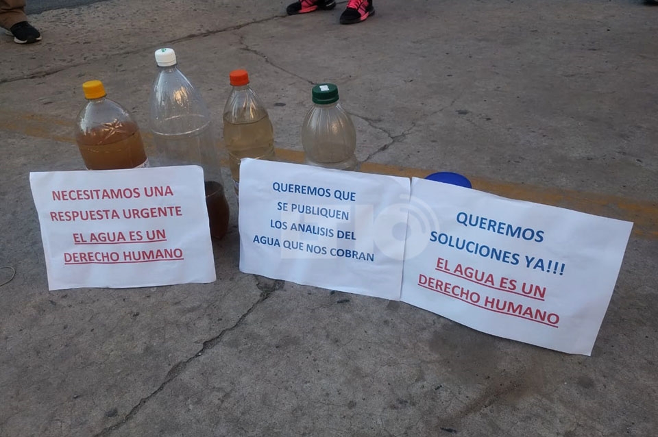 Medio centenar de vecinos de Santo Tomé protestó este fin de semana frente al Municipio de esa ciudad por la calidad del agua que consumen. Si bien la convocatoria fue encabezada por vecinos de barrio Loyola a través de las redes sociales, la protesta alcanzó este sábado a numerosos barrios de la vecina ciudad, quienes se acercaron al palacio Municipal con pancartas y botellas que contenían muestras del líquido.