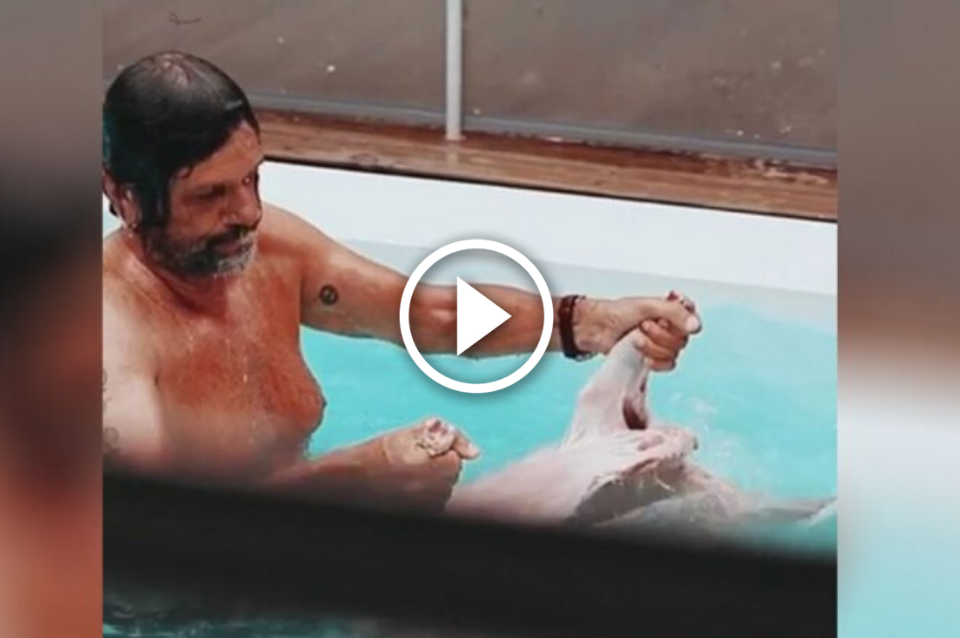 Video: así caía el "chancho" desde el helicóptero y era sacado por Álvarez Castillo de la pileta