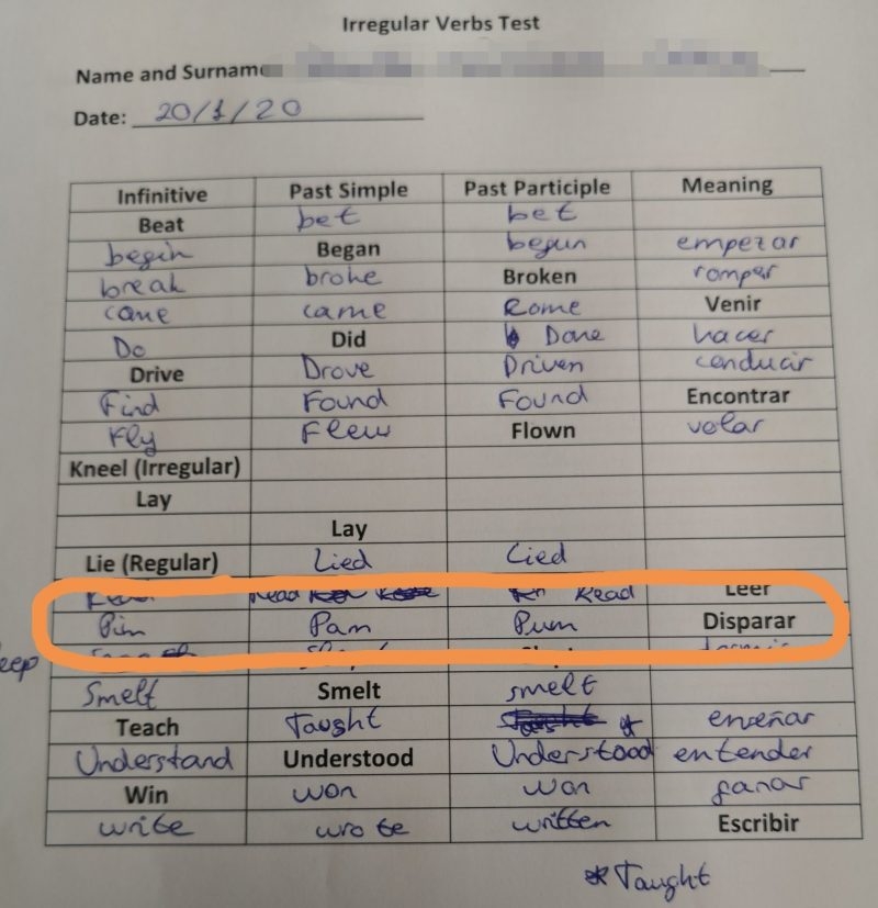 Un profesor de inglés que reside en España, compartió a través de su cuenta personal de Twitter, un examen de inglés de un estudiante que conjugó mal un verbo. El resultado se hizo viral.