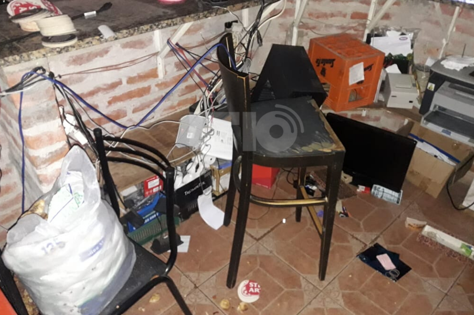 En las fotos se pueden observar los daños que sufrió el local, en especial en el mobiliario, vidrios de ventanas y parte de la mercadería que quedó esparcida por el suelo.