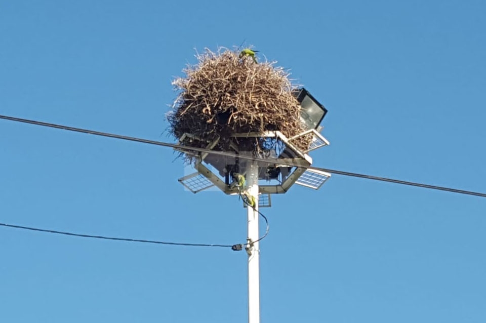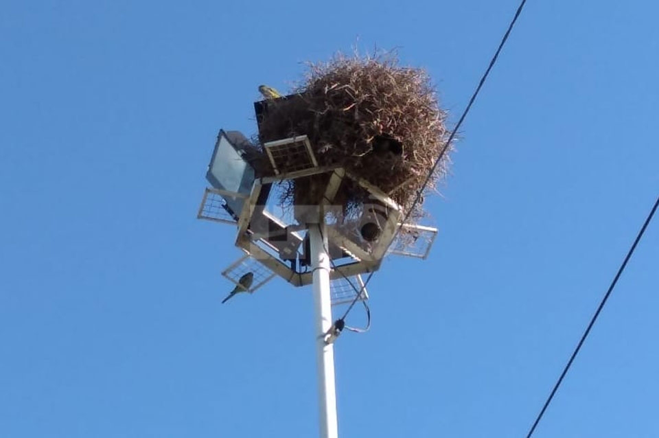 "A principios de 2019 el municipio derribó el nido, pero dejó la paja en la parte baja del reflector y los loros volvieron a armarlo", contó.