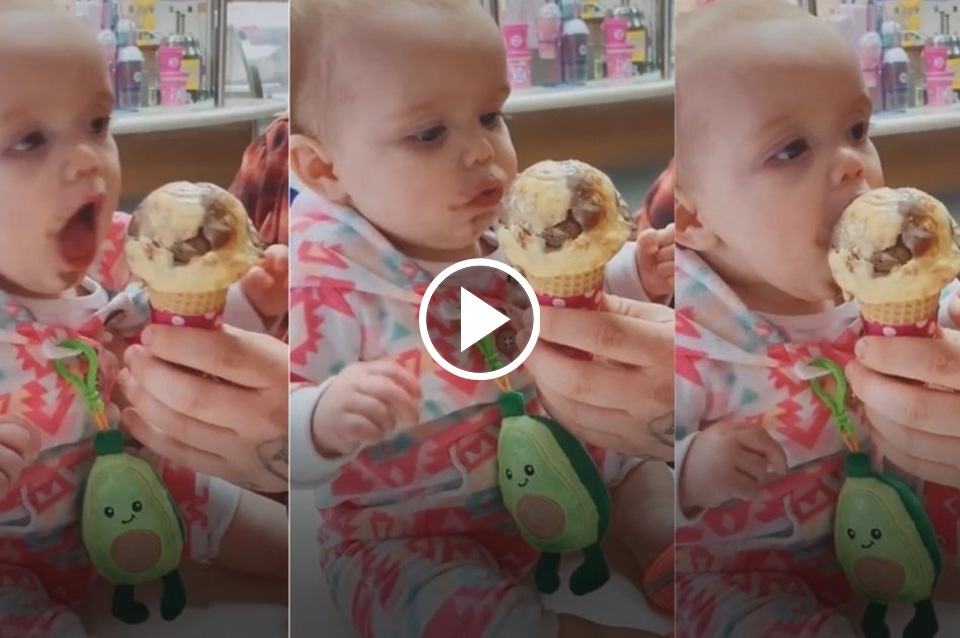 Brittani Jernigan registró con su celular a su hija Blakely, donde la nena muerde tímidamente una bocha de helado y, al notar lo agradable de su sabor, abre los ojos exageradamente, agarra el postre con ambas manos y comienza a comerlo con desesperación en medio de las risas de los presentes.