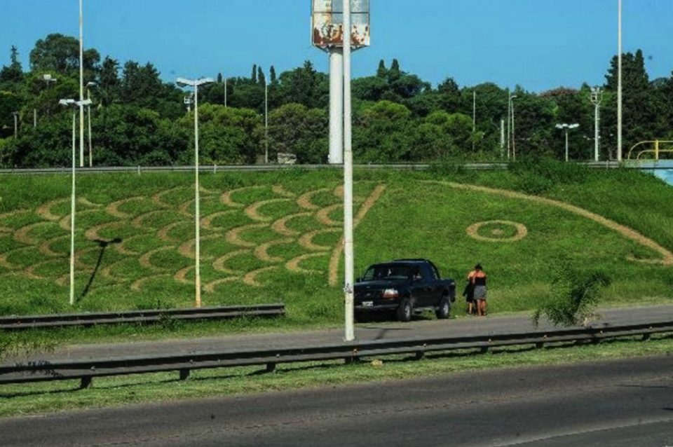 Una llamativa imagen sorprendióa los paranaenses y turistas que pasan por la zona del rulo del Túnel en la capital provincial. Allí dibujaron con el césped un pescado en uno de los taludes de los puentes del ingreso.