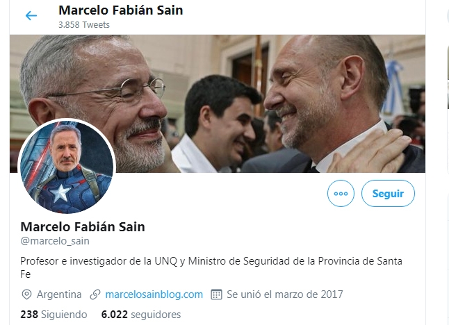 En horas de la tarde de este jueves una curiosa foto de perfil comenzó a verse en la cuenta oficial de Twitter del ministro de Seguridad de la Provincia Marcelo Sain.