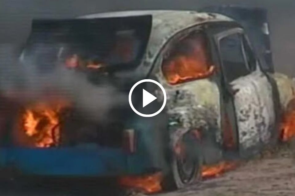 Cansado de que su Fiat 600 parara y no arrancara de nuevo, Martín de Bahía Blanca tuvo una reacción insólita y decidió bañar a su auto con nafta y prenderlo fuego.
