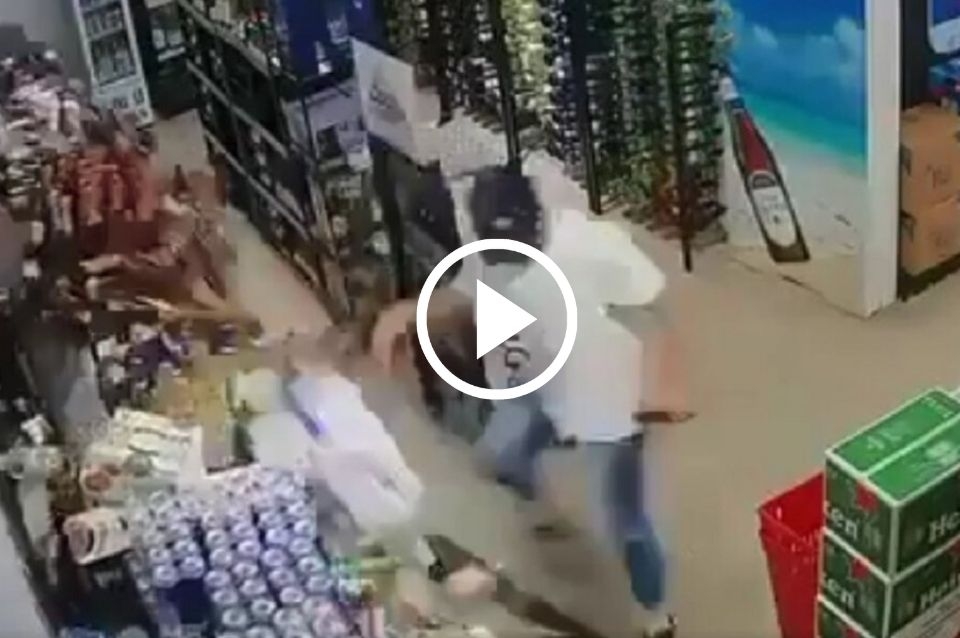 Una cámara de seguridad de un supermercado ubicado en Islas Caimán registró el momento en el que un cliente intentó sostener una estantería repleta de latas y botellas de cerveza en medio de un sismo, pero no pudo.