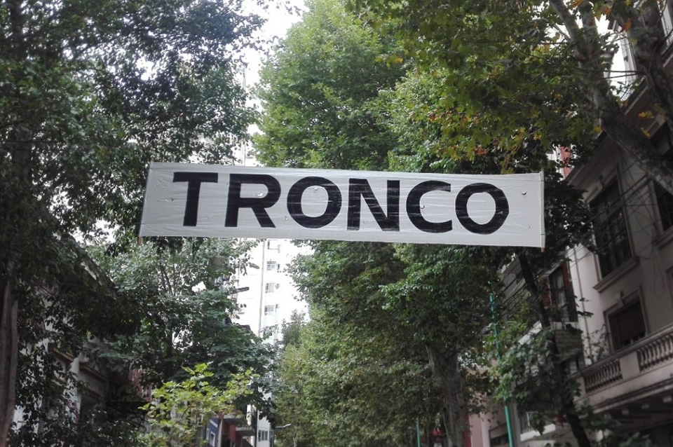 Se trata de un pasacalles con la palabra "TRONCO" escrita bien grande en letras negras y sin ninguna aclaración, lo que llamó la atención de propios y ajenos.