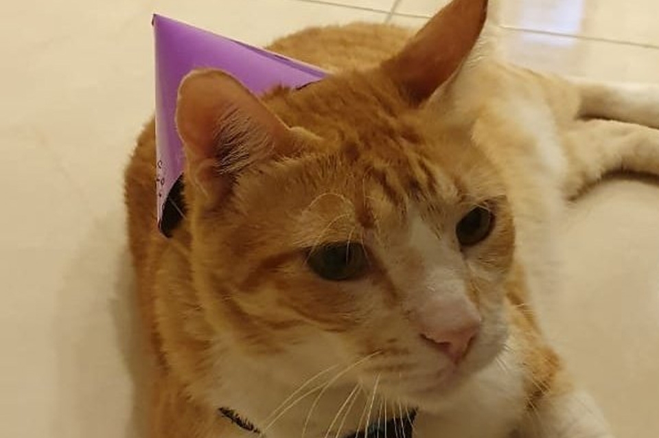 Se nota que quienes organizaron el cumpleaños de este simpático gato prestaron atención a todos los detalles.