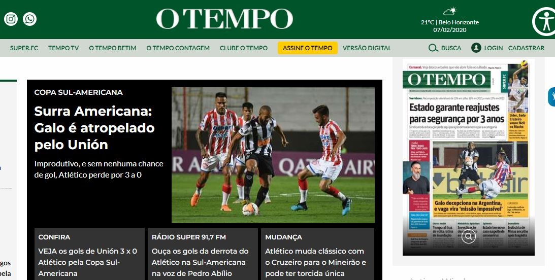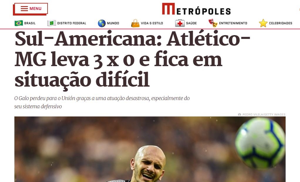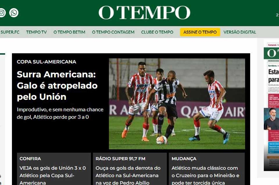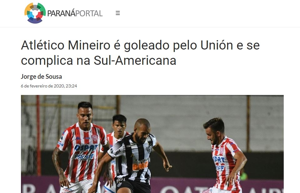 Los medios brasileros se vieron sorprendidos por la dura derrota del Mineiro y cargaron contra la actuación del equipo de Dudamel. "El Galo fue atropellado por Unión", "El Galo decepciona en Argentina y va por la misión imposible", "Atlético pierde feo y se complica" es la traducción de algunos títulos de noticias más importantes del país vecino.