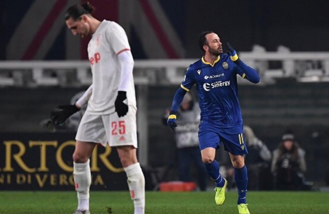 Juventus, líder de la liga italiana de fútbol de primera división, con el delantero argentino Gonzalo Higuaín de titular y con un gol del astro portugués Cristiano Ronaldo, perdió hoy con Hellas Verona por 2 a 1, de visitante, en uno de los partidos de la 23ra fecha.