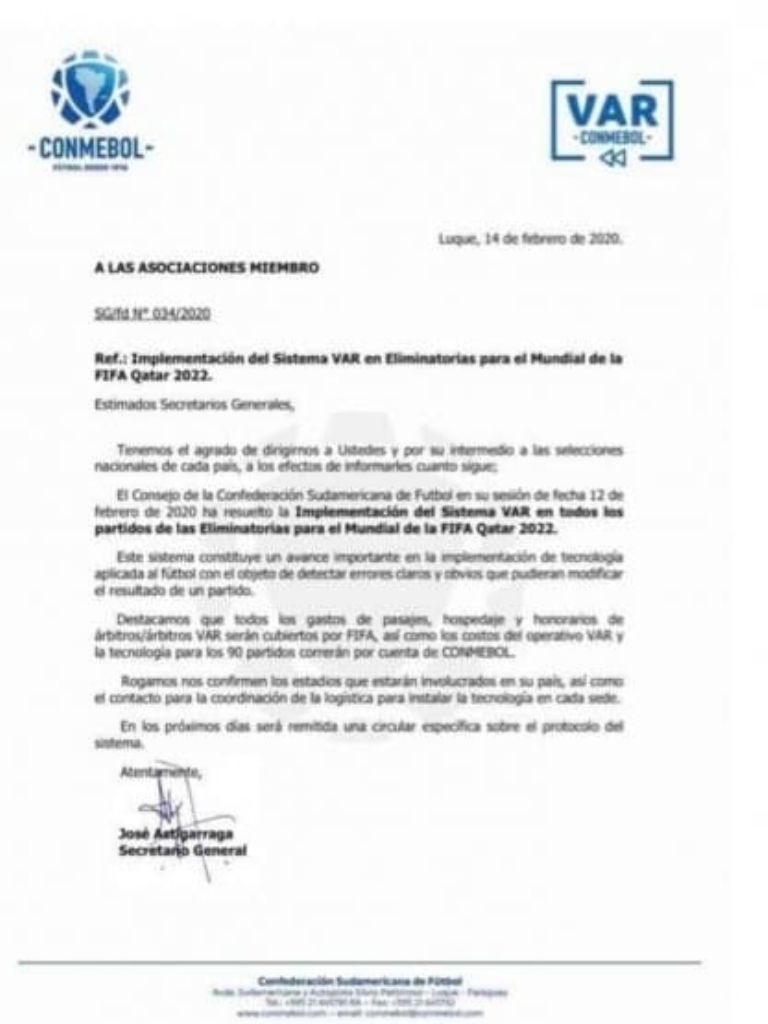 La Conmebol confirmó que el VAR estará presente en las próximas Eliminatorias Sudamericanas para el Mundial de Qatar, a disputarse en 2022.