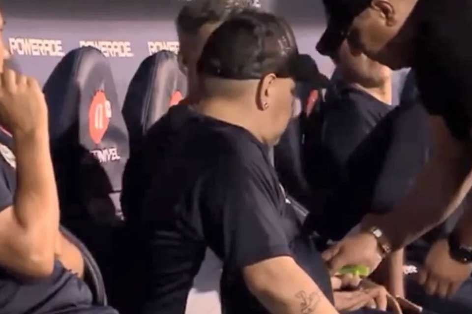 Cuatro minutos del segundo tiempo. Rosario Central se encontraba arriba en el marcador ante Gimnasia y Esgrima de La Plata por 1-0 y una escena se volvió viral: un colaborador se acerca a Diego Maradona con algo en la mano, se lo ofrece.