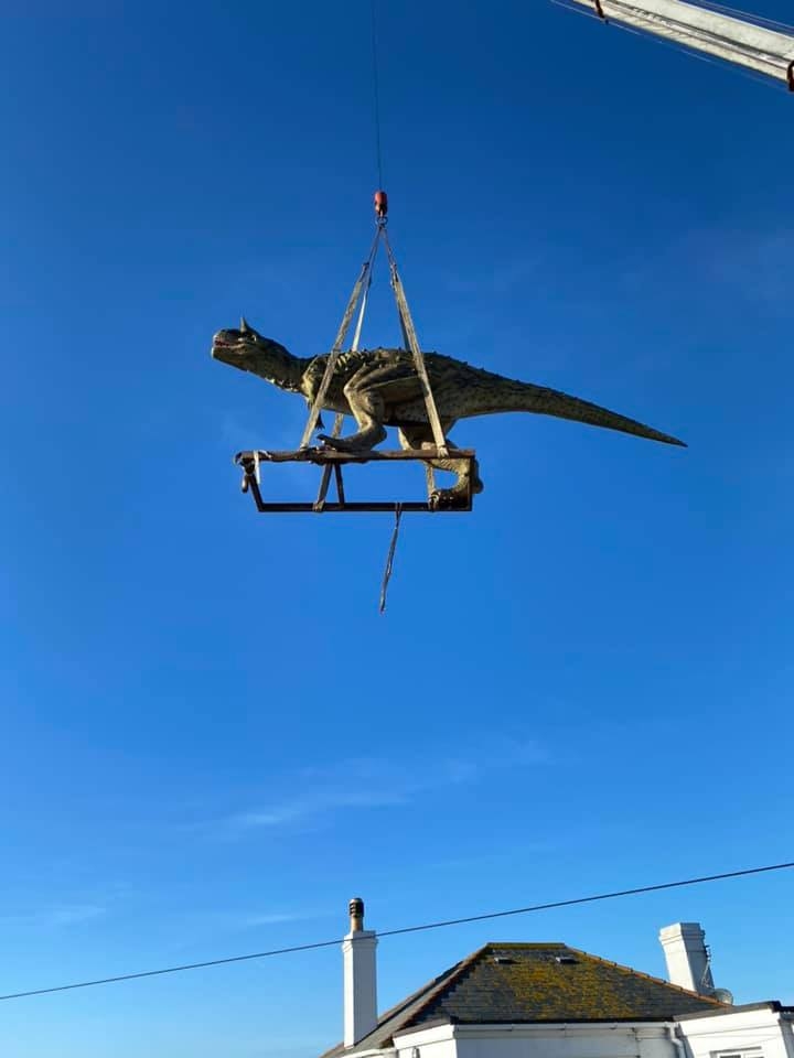En principio se pensó que era un regalo para la Navidad, pero llegó un mes y medio después por los problemas de logística. La empresa de transportes llamó porque el dinosaurio no cabía en el camión que lo iba a transportar. Tuvieron que buscar otra forma.