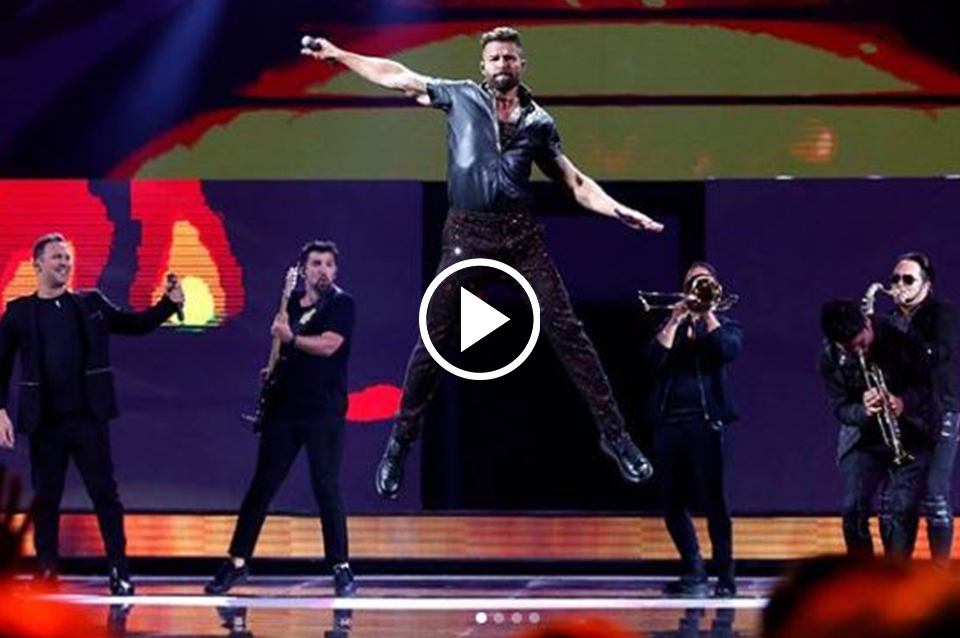 Ricky sorprendió con sus hits. Comenzó con "Cántalo" y siguió con "La bomba". También sonaron "Bombón de azúcar", "Tiburones" (de su próximo disco que saldrá en abril), "Livin'la vida loca" , "Shake your bon-bon", "A medio vivir", "Fuego contra fuego", "Vuelve", "María", "La copa de la vida" y "Vente pa'ca", fueron algunos de ellos. El cantante de 48 años tuvo un gran desempeño sobre el escenario, acompañado de su banda y de bailarines.