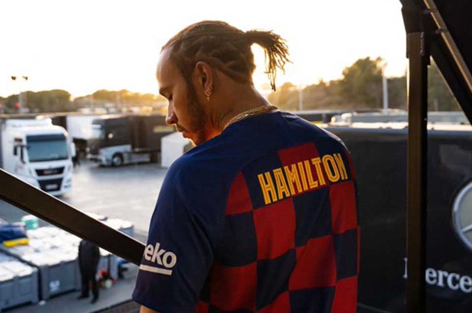 En la previa del Clásico español, entre Barcelona y Real Madrid, Lewis Hamilton entró en escena y tomó parte por el club catalán, el que le envió una camiseta con su nombre.