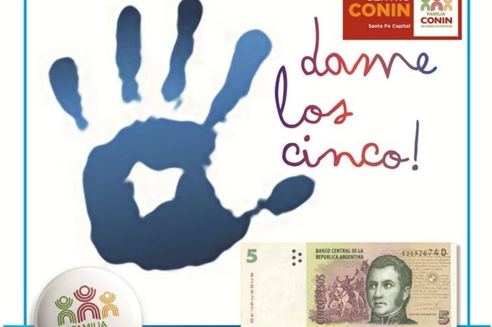 La fundación Hoy por Mañana, integrante de la familia Conin (que lucha contra la desnutrición infantil en todo el país) recibe los billetes de 5 pesos, que salieron de circulación desde este domingo 1° de marzo.