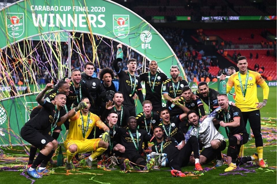 Manchester City, con un gol del argentino Sergio Agüero, se coronó este domingo tricampeón de la Copa de la Liga de Inglaterra tras vencer a Aston Villa por 2-1 en la final disputada en el mítico estadio Wembley de Londres.