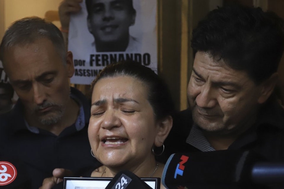 En la puerta de su casa del barrio porteño de Recoleta, y antes de partir rumbo al cementerio de Chacarita, Silvino Báez dijo: “Día a día es más duro. Tenemos un dolor inmenso, bronca, este lunes en especial que no está Fernando con nosotros”.
