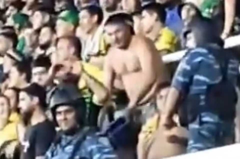 El aficionado en cuestión fue captado en las tribunas del estadio Norberto Tomaghello haciendo el gesto de los monos hacia los brasileños. Las imágenes fueron tomadas por un hincha del Santos, con su celular, y difundidas rápidamente por varios medios de Brasil, entre ellos Fox Sports.