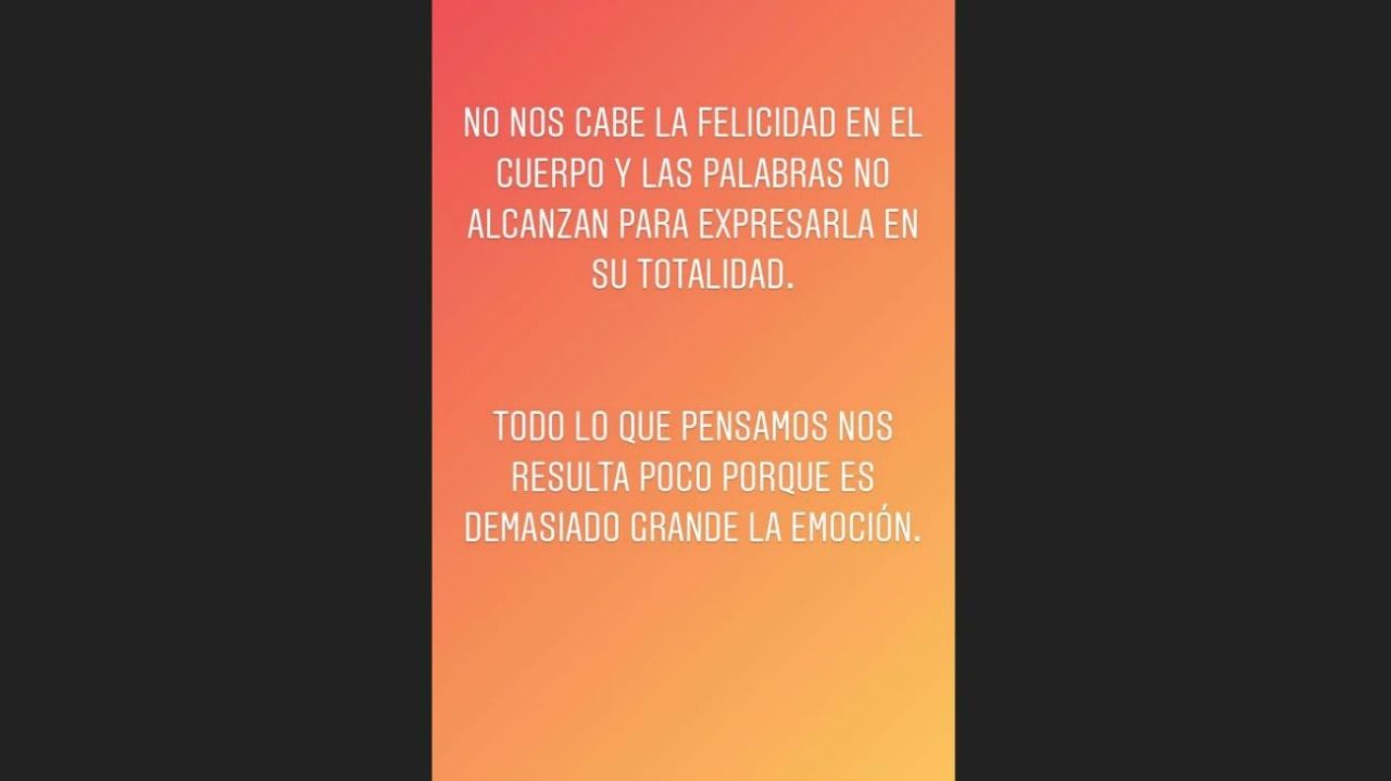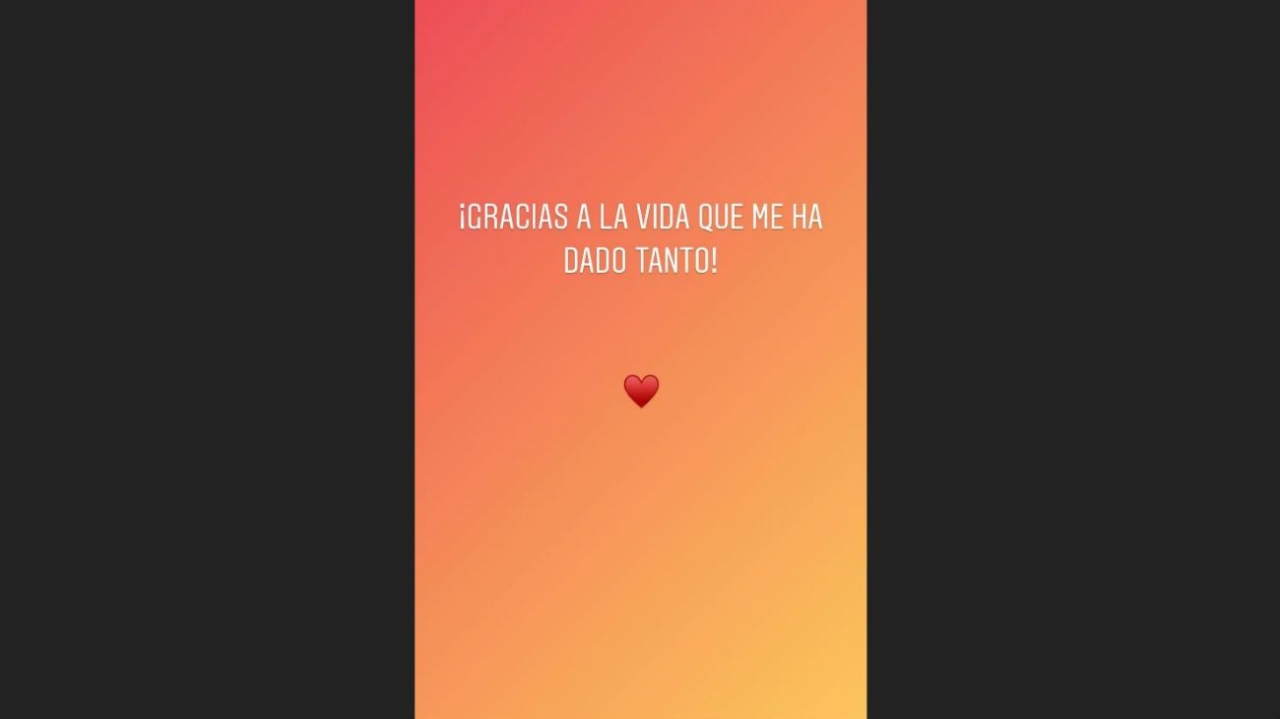 En otra historia, adjuntó el emoji de una mujer embarazada para describir el gran momento que los abraza. Y por último expresó: "¡Gracias a la vida que me ha dado tanto!", haciendo referencia a la popular canción compuesta por Violeta Parra cuya versión de la gran Mercedes Sosa la difundió a nivel internacional.