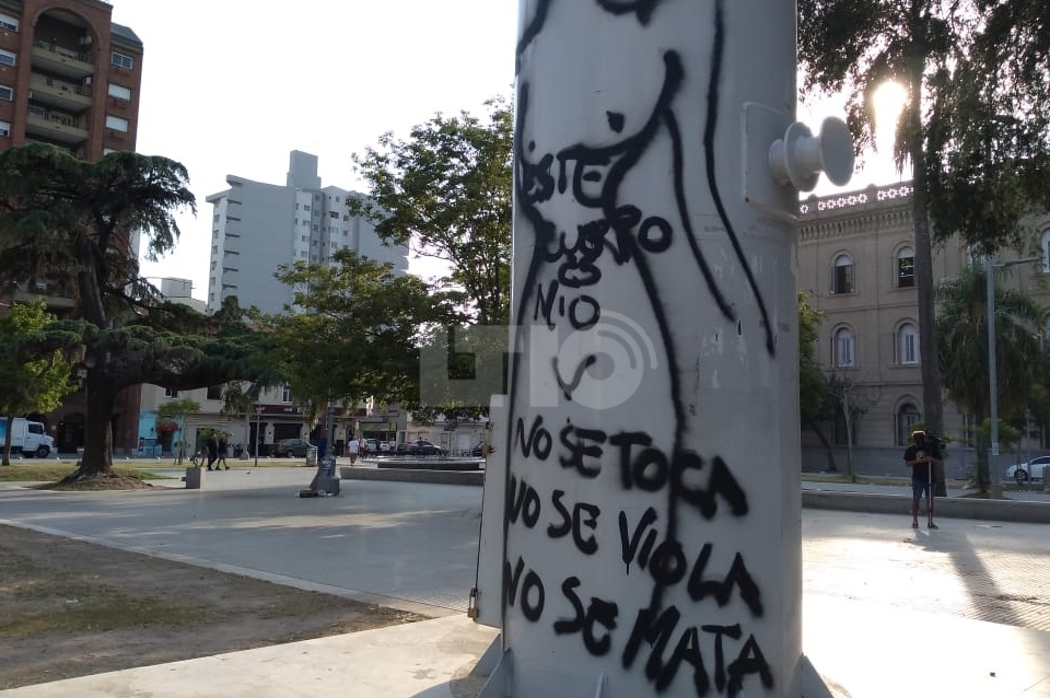 Tras la multitudinaria manifestación de mujeres que se realizó este lunes 9 de marzo en la plaza 25 de Mayo de nuestra ciudad, el móvil de LT10 constató y registró en imágenes una serie de pintadas que dañaron el patrimonio público.