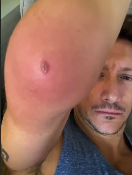 El actor se golpeó el codo y tuvo que asistir a la guardia médica del Hospital Italiano, donde le diagnosticaron bursitis aguda con celulítis por lo cual deberá estar en reposo y tener su brazo inmovilizado por unos días.