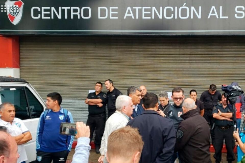 La escribana Marisa Galarza, especialmente enviada por la Superliga, recibió como respuesta que el Monumental permanecía cerrado por la decisión institucional comunicada anoche y dejó constancia de la presencia de los dirigentes de Atlético como muestra de voluntad para jugar el partido.