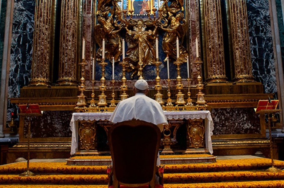 En su primera salida del Vaticano desde que se iniciara la difusión del virus, el Papa visitó esta tarde la Basílica de Santa María la Mayor.