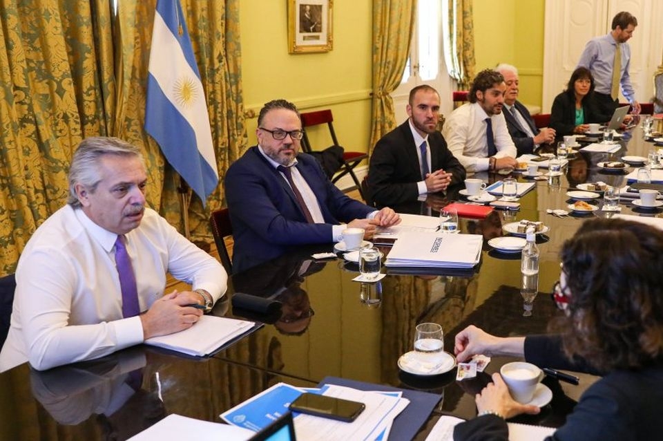 El presidente Alberto Fernández encabezó este lunes en Casa Rosada la reunión del Gabinete Económico y Social que concluyó minutos después de las 14. Del encuentro participaron el jefe de Gabinete, Santiago Cafiero; los ministros de Economía, Martín Guzmán; de Desarrollo Productivo, Matías Kulfas; de Salud, Ginés González García; de Desarrollo Social, Daniel Arroyo, y de Turismo y Deportes, Matías Lammens.