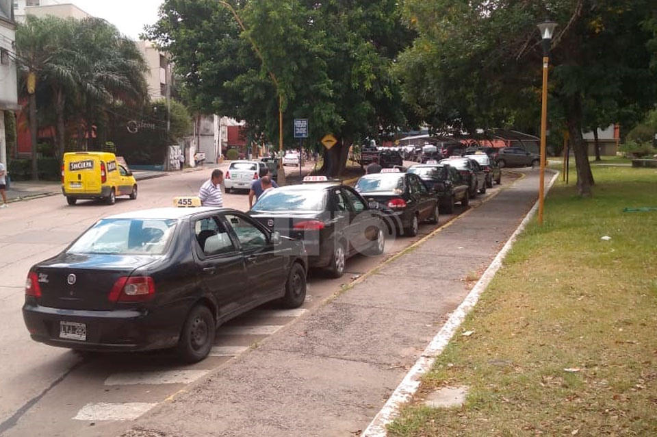 En la parada de la Terminal de ómnibus se observó una gran cantidad de taxis estacionados esperando por pasajeros que no llegan, debido a la poca circulación de personas.
