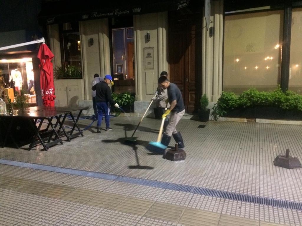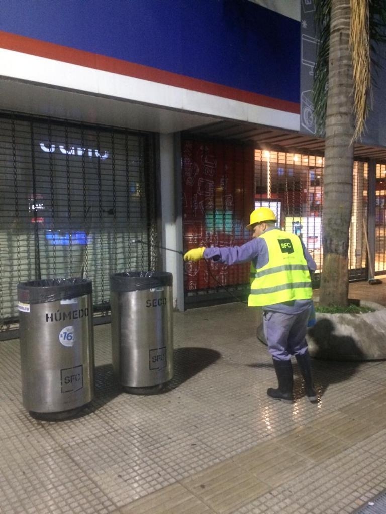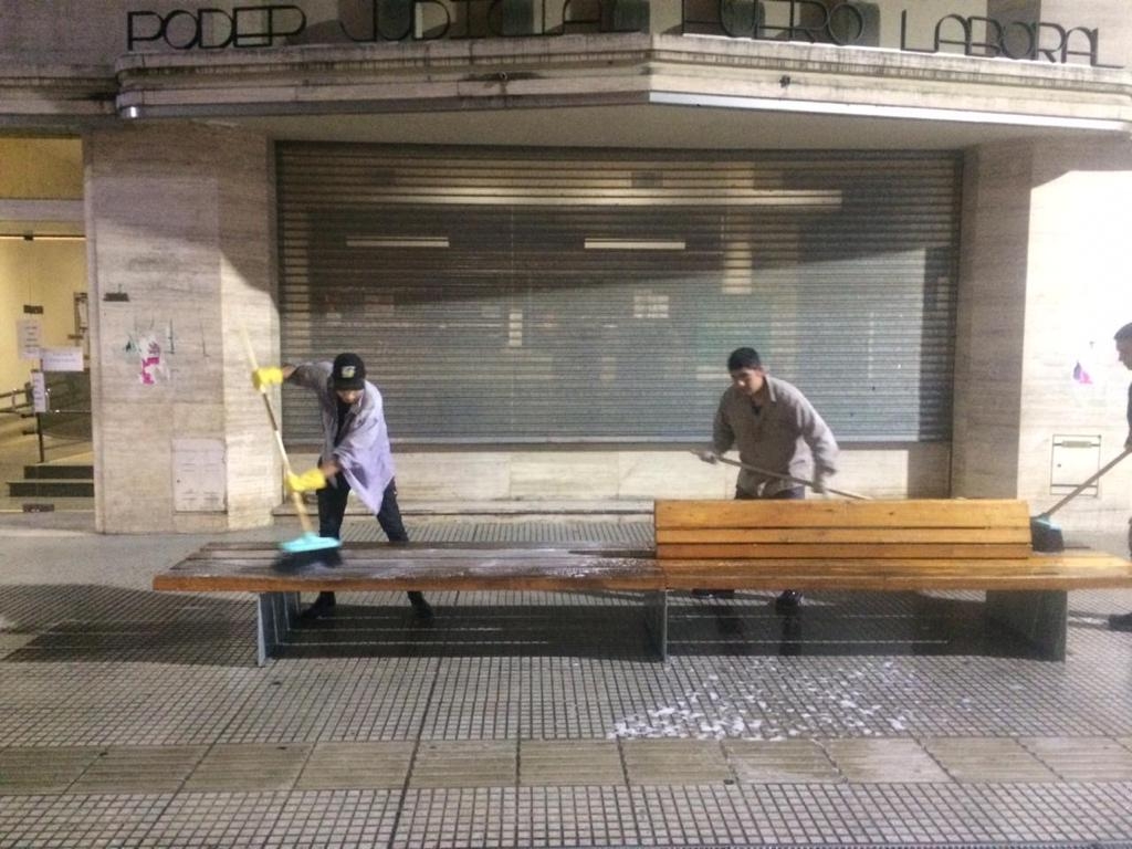Las tareas son llevadas a cabo por personal del área de Higiene y Seguridad del Municipio y se iniciaron en la peatonal santafesina con la limpieza de bancos y cestos de residuos.