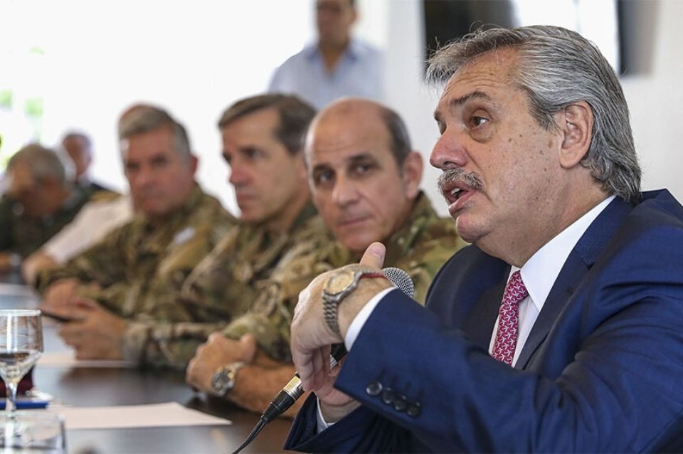 A través de una videoconferencia, el presidente Alberto Fernández se comunicó este mediodía con los comandantes conjuntos de zonas de emergencia y "auditó las diferentes acciones de apoyo a la comunidad y asistencia humanitaria que llevan adelante simultáneamente" las Fuerzas Armadas en todo el país, en el marco del primer día del aislamiento social preventivo y obligatorio, informaron fuentes oficiales.