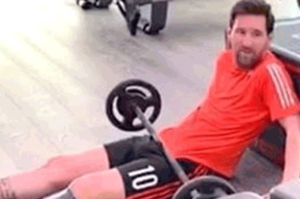 Un video publicado en Twitter por la cuenta inglesa "Otro", una comunidad que acerca a deportistas profesionales con sus fanáticos, lo mostró en su gimnasio particular con un pantalón corto "leproso" con el número 10 y en compañía de su hijo menor, Ciro, que juega a su alrededor mientras cumple con la rutina física.