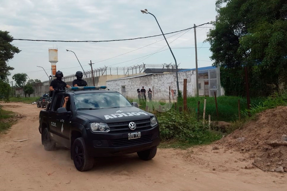 Fuera de la unidad penitenciaria se registra fuerte presencia de personal policial en ambos ingresos, como así también de familiares de los presos que se congregaron en inmediaciones a la cárcel.