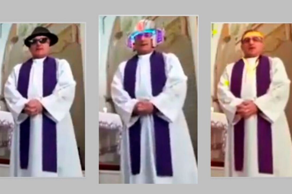 Sin embargo, el intento de este sacerdote salió mal. Cuando comenzó a transmitir en vivo olvidó desactivar los filtros de Facebook y generó una desopilante situación.