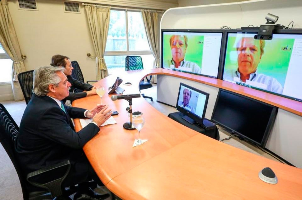 "El mundo financiero tiene una cuota de humanidad y lo celebro", destacó el Presidente durante la videoconferencia, realizada desde la residencia de Olivos, y de la que participó también el secretario de Asuntos Estratégicos, Gustavo Beliz.
