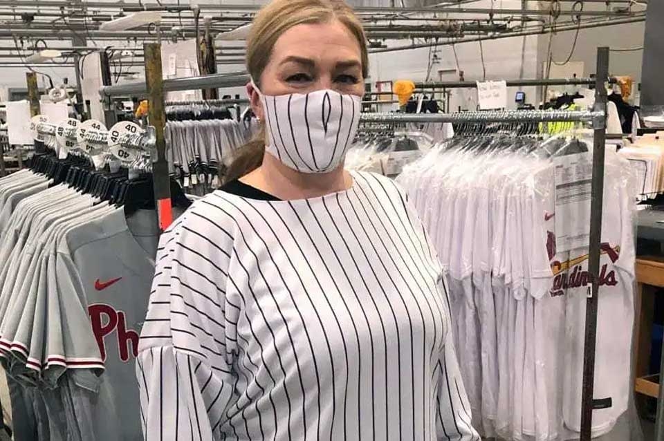 Un lote inicial de máscaras y batas ya ha sido confeccionado utilizando tela inicialmente destinada a los uniformes de los Yankees de Nueva York y los Phillies de Filadelfia.